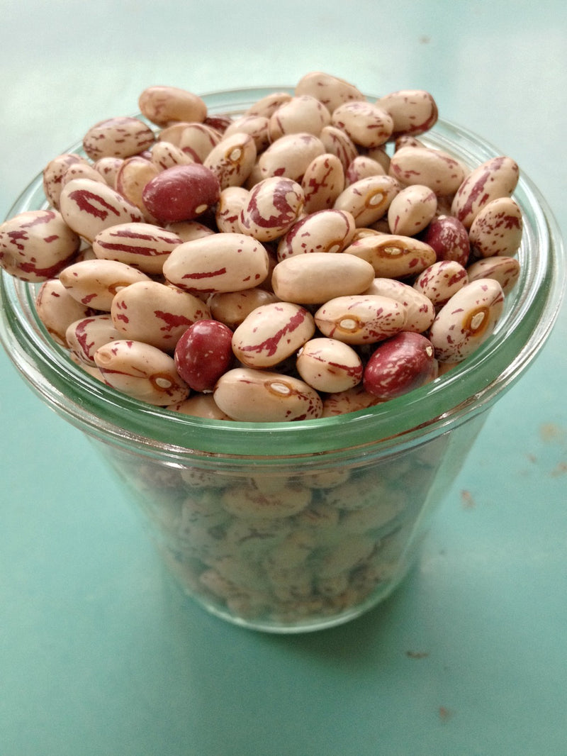 (P. vulgaris) A family heirloom from one of the six original members of the Seed Savers Exchange (now the largest public participation heirloom seed organization in the world). These beans are said to have been brought by Lina’s grandmother to Missouri by covered wagon in the 1880s. Delicious smooth texture and rich flavor for soups or on their own. Terrific variety to freeze as shelly beans for wonderful winter meals! Horticultural type.