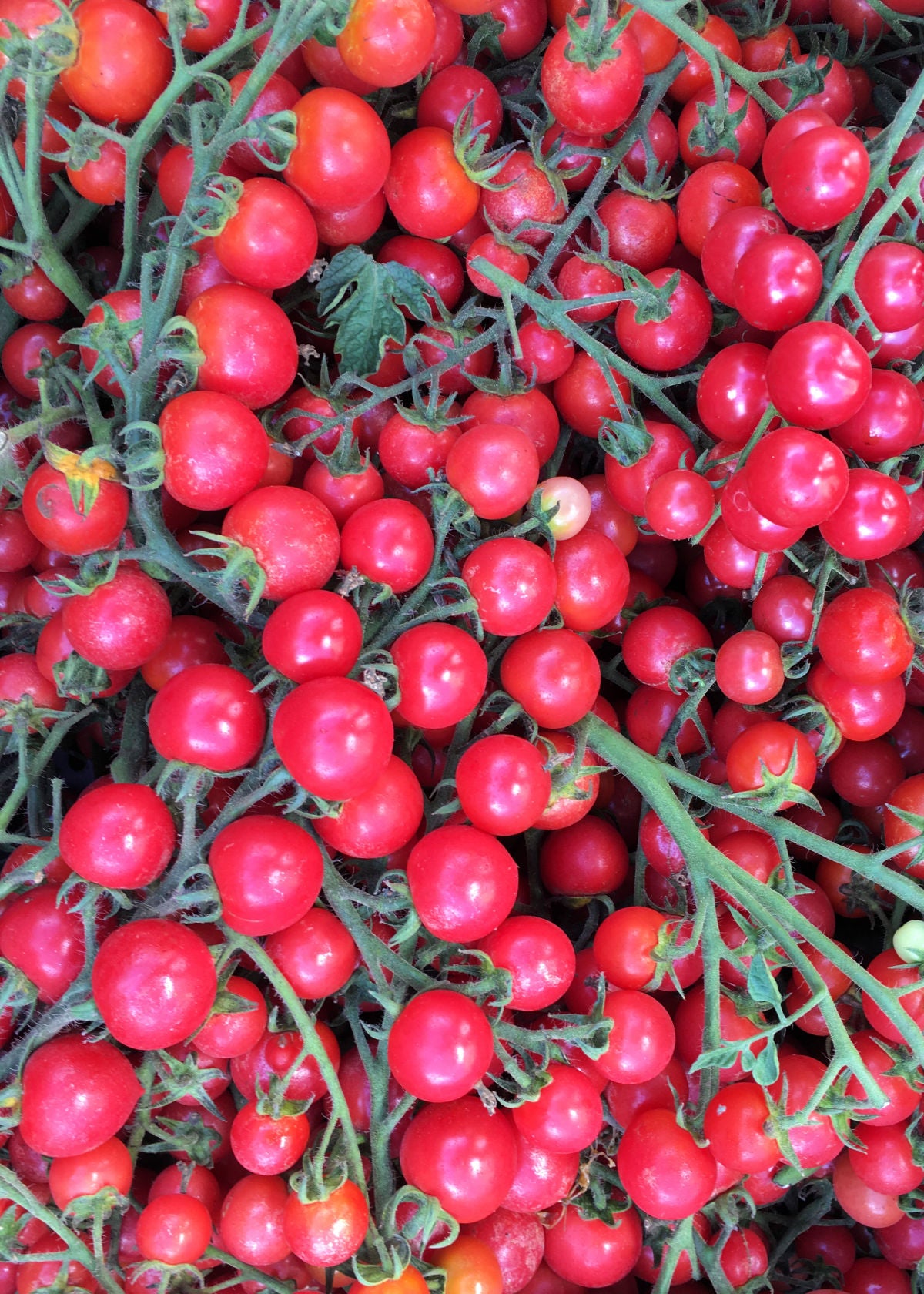 (Lycopersicon esculentum) A tomato has to taste very good. Full stop. But once that baseline criterion has been established, we find ourselves drawn to the other special characteristics that set a truly great tomato apart. Hailing originally from Japan, Pinky is a fabulous tasting mid-sized cherry tomato: pinkish-red, firm, and fleshy with a very sweet, rich summertime flavor. But Pinky also has a superpower, and that is some of the biggest damn trusses you’ve ever seen! I’ve counted 60 ripe tomatoes on a single-branched truss. Much like “Gardeners Sweetheart” they are very resistant to splitting, never really get “over-ripe”, and are thus are less demanding from a harvest perspective, perfect for allowing to fully ripen nearly to the tip for clipping whole trusses and selling “on the vine”. I don’t believe these are true multiflora types that produce sprays of fruit like a bunch of grapes (which have historically unimpressed, flavor-wise). We are all really excited about this one at the home farm. Indeterminate.