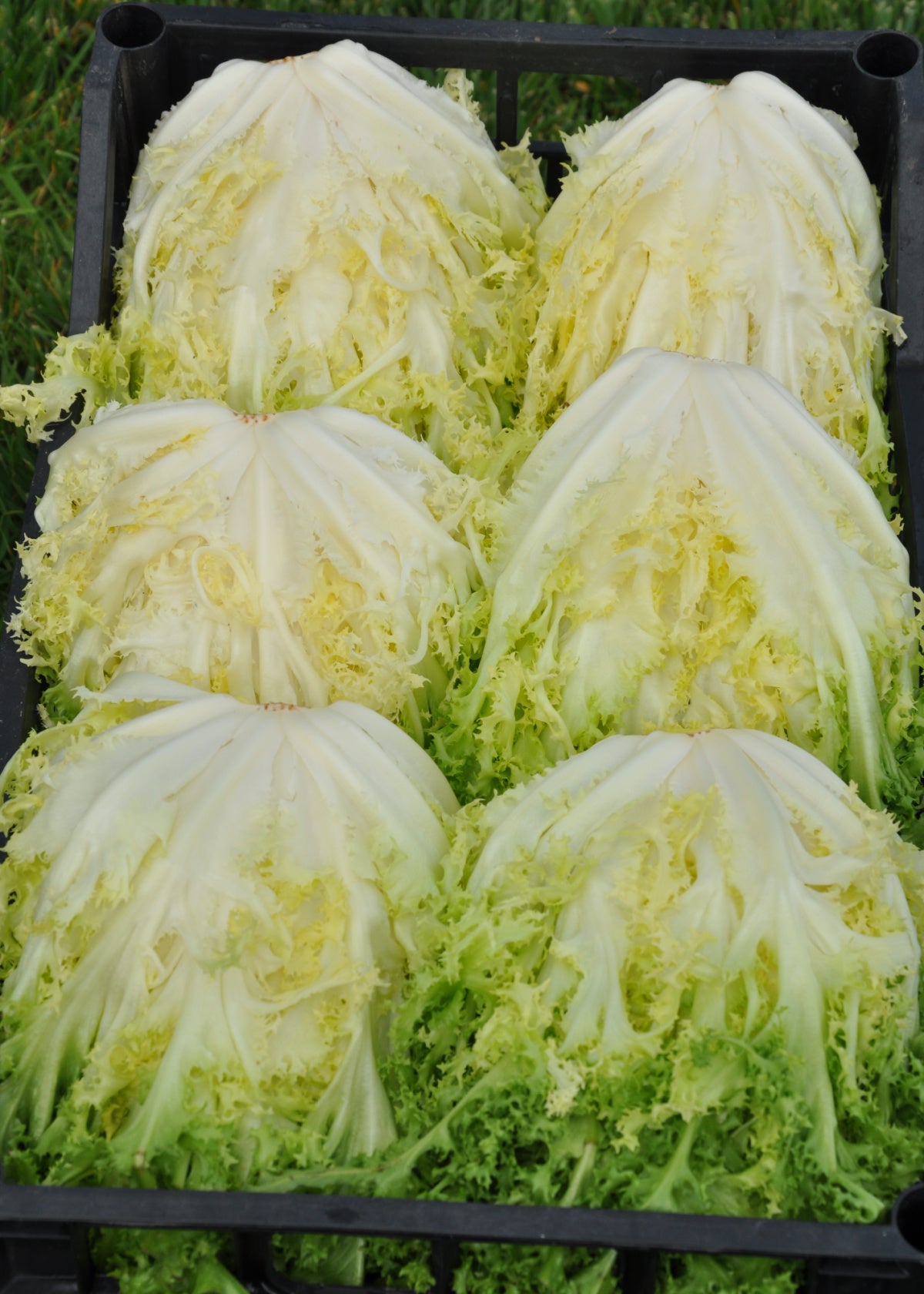 (Cichorium endivia) Curly endive needs a hype man as it too often gets lost in the shadows of its glamorous radicchio kin. A properly blanched core of curly endive is a thing of beauty and a joy on the salad plate. Frilly golden leaves add visual whim, just the right amount of mild, refreshing bitterness, and endless curls and twists to keep the dressing up in the salad where it belongs instead of left behind on the plate.