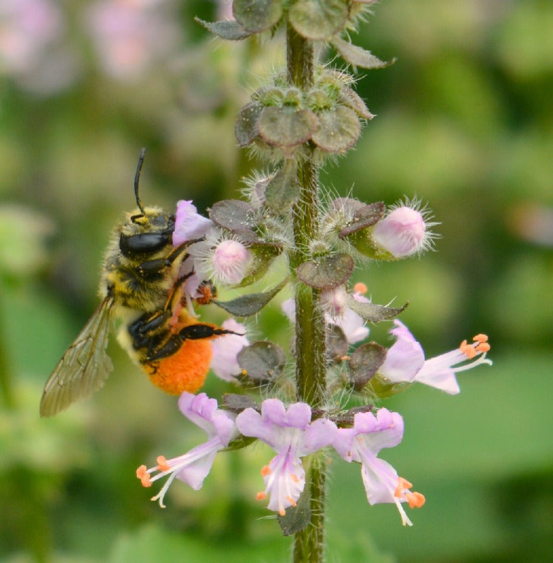 (Ocimum sanctum aka O. tenuiflorum) Considered India’s “Queen of Herbs” and cultivated for over 5,000 years for both religious and medicinal purposes. It is used in Aryuvedic medicine for its classification as an adaptogenic herb (tonic herb) that supports one's natural immune system while simultaneously relieving stress and bringing balance. An important herb in the Hindu religion, Tulsi is considered a goddess in plant form and is often found growing in a prominent location in gardens or homes in India. Interestingly, as Tulsi traveled westward into Europe and found its way into the Christian religions, it became known as the “King of Herbs” and eventually sacred or holy basil, hence its Latin name. Medicinal use of Tulsi leaves is far-reaching and includes fever, cough, stress, headaches, skin disorders… The smell is pungent, spicy, and minty, with a slight hint of sweet basil and cloves. Tulsi is a favorite forage plant for bees, and we absolutely love watching it grow and flower profusely. Like any herb you’d like to see grow bigger and bushier, pinch off flower buds as they appear. It is a lovely and fragrant addition to any flower bouquet as well!