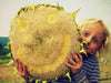 (H. anuus) We’ve been quite taken by this sunflower since we first saw it over a decade ago. 7-8’ plants produce a single stunning flower head to 10" across, with an unusual fuzzy lime green center that eventually fleshes out with seeds as it matures. Huge heads droop downward at maturity offering some protection from birds, but its best to cover them with netting if saving for seed. Delicious white seeds.
