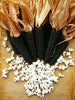 We are not ashamed to say, in the height of the busy growing season, after a long day's work, with no motivation left to cook, we have served up our fair share of popcorn family dinners. (You thought we had anything left at the end of the day to actually cook any of those veggies we so lovingly nurtured for market?). Fact is, we eat a LOT of popcorn around here, and I am so glad we have found a cultivar that we can reliably mature in NW Washington. A product of the Podoll family’s inspiring farm-based breeding program at Prairie Road Organics in Fullerton, ND, Dakota Black produces show-stopping 6-7” glossy garnet-black ears on sturdy plants. Kernels pop up pure white. Talking with Theresa Podoll years ago she told us had been working to select for a rounder kernel shape which they consider to produce superior popcorn, and we have continued to work with that aesthetic in mind. This is one of the varieties we hold most dear for home use. And, we promise, this seed Grows and Matures in Northwest WA!