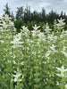 (Salvia viridis) This family of salvia is unusual among flowering plants in that it is the bract (a specialized leaf associated with a flower) rather than the flower itself that is the star of the show. Small nondescript white flowers begin to appear at leaf nodes along the stems which, in spite of their size, are very attractive to bees and other pollinators. Patience is rewarded though, later in the season as ornate white bracts with delicate green veining appear at the tips of each shoot. They are graceful long-stemmed, very long-lasting cuts to add an elegant vertical element to arrangements, both fresh and dried. Stately, bushy plants with many long upright stems grow to waist height and are a lovely addition to ornamental gardens.