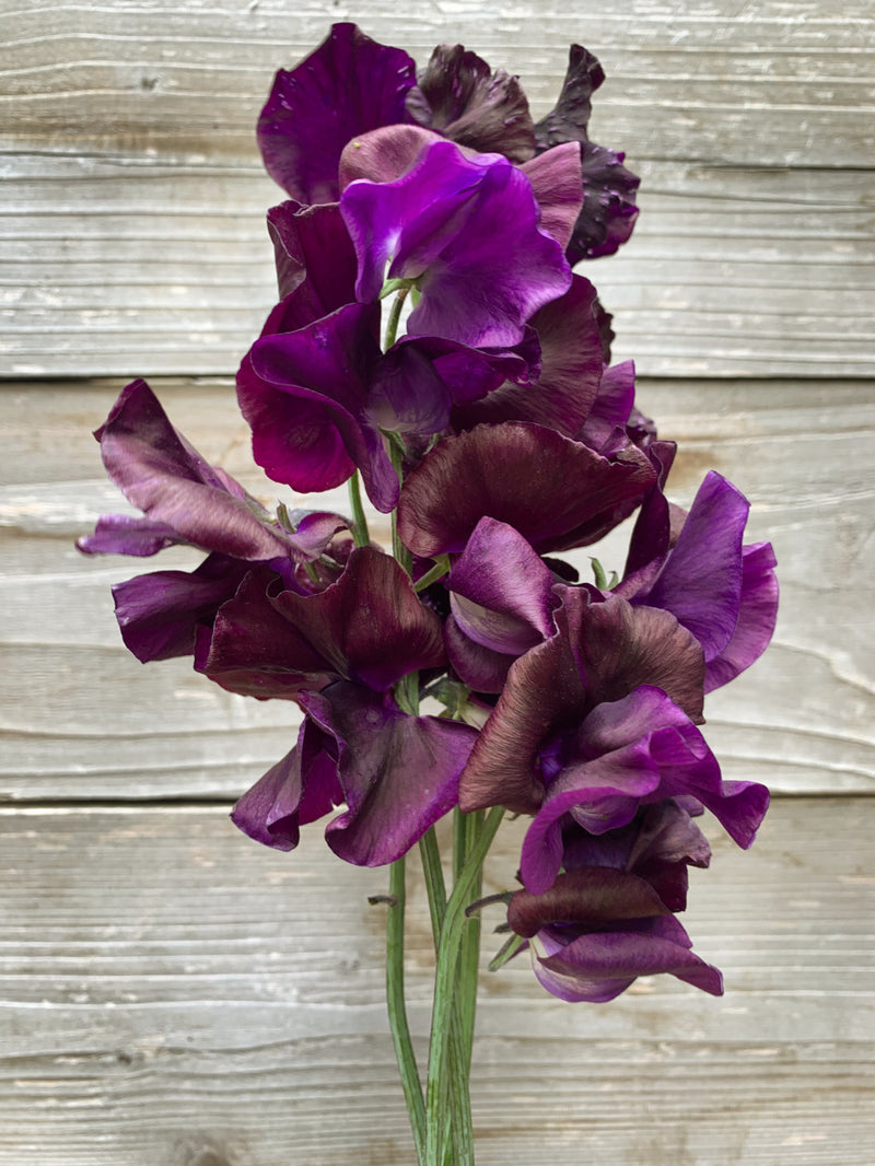 (L. odoratus) We love the dark, moody sweet peas and this Spencer-type is a standout. Strong vines with long stems, dark eye-catching purple-black blooms, and wonderful scent. Whoever Jenny is, she should be pissed because she isn't "just" anything but spectacular! Released in 2005 by Eagle Nurseries, UK.