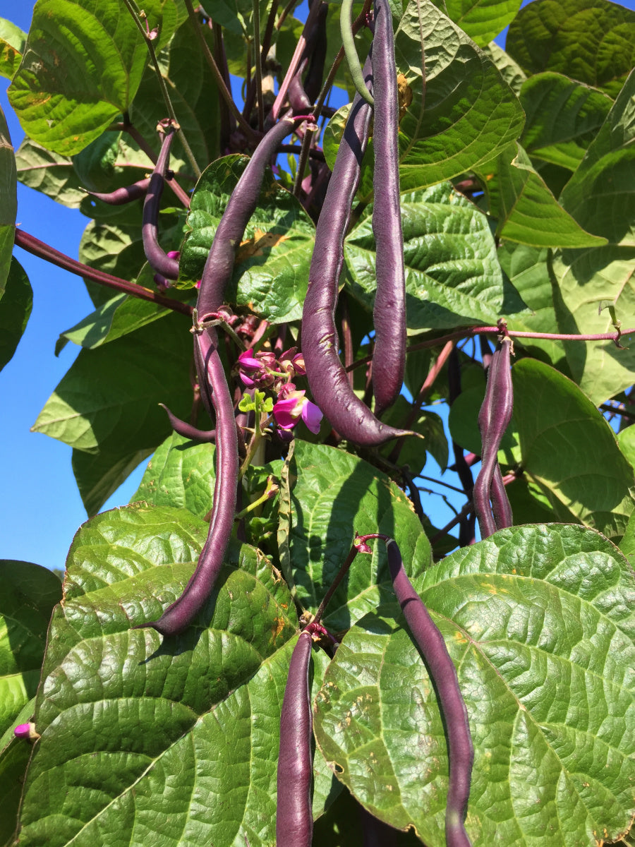 (P. vulgaris) We started growing this bean on the recommendation of a customer who feared her favorite strain of it, from the old “Cooks Garden” catalog, would get lost after they were bought by Burpee’s several years ago. Italian for “purple triumph”, it’s a strong climber with exceptionally long, slender, and slightly flattened pods with a deep violet color and excellent flavor. Easy color to spot among the foliage and long enough to tie into a pretzel, it's beautiful in raw bean salads as well as cooked, though like all purple beans the color is not heat-stable. Kid favorite!