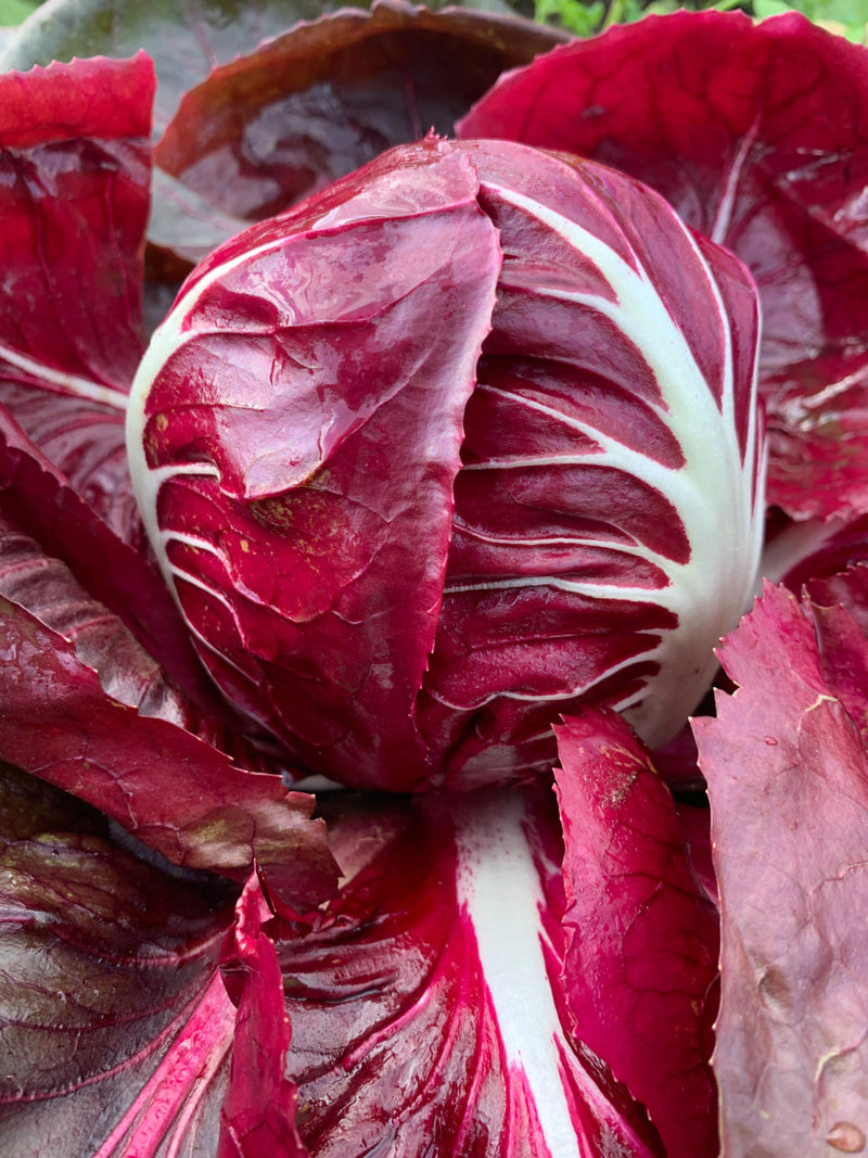 More a cooking than a salad radicchio, its manageable size is perfect for wedging and grilling, roasting or sauteeing. A top choice in our home for pizza toppings, grilled veg + radicchio sandwiches or to toss with pasta. Top choice for weeknight risotto too (lookin' at you, tardivo, for the weekend).