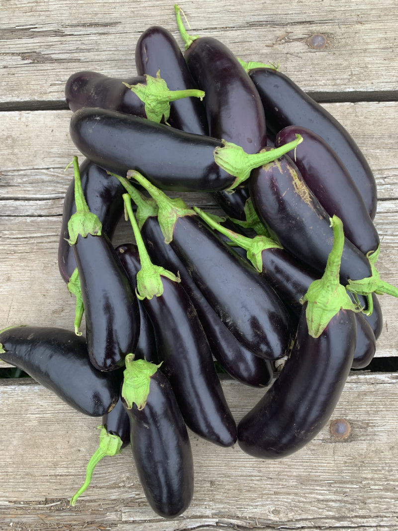 Amazing! Did you know that eggplants WEREN’T just flowering ornamentals here in the PNW but that they might actually produce fruit too...even outside of a greenhouse?! And not just a lonely token fruit to insult all your hard work. Lots of eggplants. Beautiful, slender, 4-8” long, buttery, and Not at all bitter eggplant. Some summers are cold. And wet. And then cold. Yet we are always still awash in these beauties. From our field, not our greenhouse. Even if you think you despise eggplant grow these and give them away to your friends and neighbors. They will be in awe of your mad skills. Seeds collected from Ukraine in 1993 by Kent Whealy, co-founder of Seed Savers Exchange. The most prolific variety we’ve grown for cool-climate production. Terrific for market.